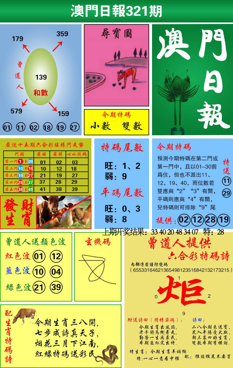 | 321期 | 兔虎蛇龙羊马 | 开?00 |